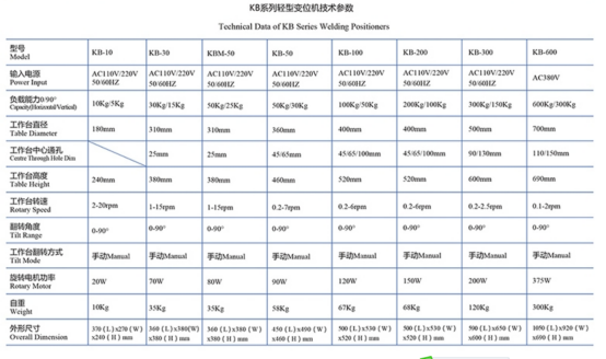 焊接變位機(jī)一般由工作臺(tái)回轉(zhuǎn)機(jī)構(gòu)和翻轉(zhuǎn)機(jī)構(gòu)組成,變位機(jī)通過工作臺(tái)的升降,翻轉(zhuǎn)和回轉(zhuǎn)使固定在工作臺(tái)上的工件達(dá)到所需的焊接,裝配角度,變位機(jī)工作臺(tái)回轉(zhuǎn)為變頻無級調(diào)速,可得到滿意的焊接速度