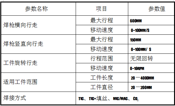 工件上料,定位,焊槍成一定角度可上下、左右和角度調整,工件旋轉, 焊槍縱向行走,成型美觀,焊接質量好。